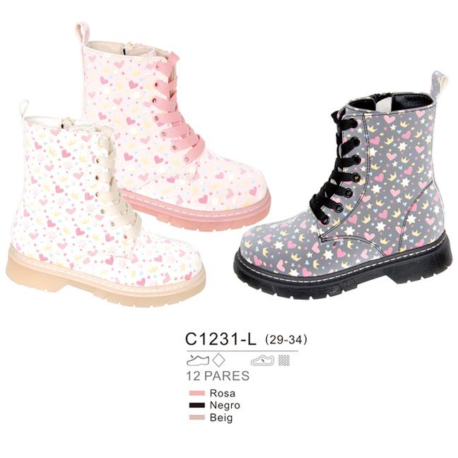 Botín corazones NEGRO ( TALLA 29 AL 34) cantidad